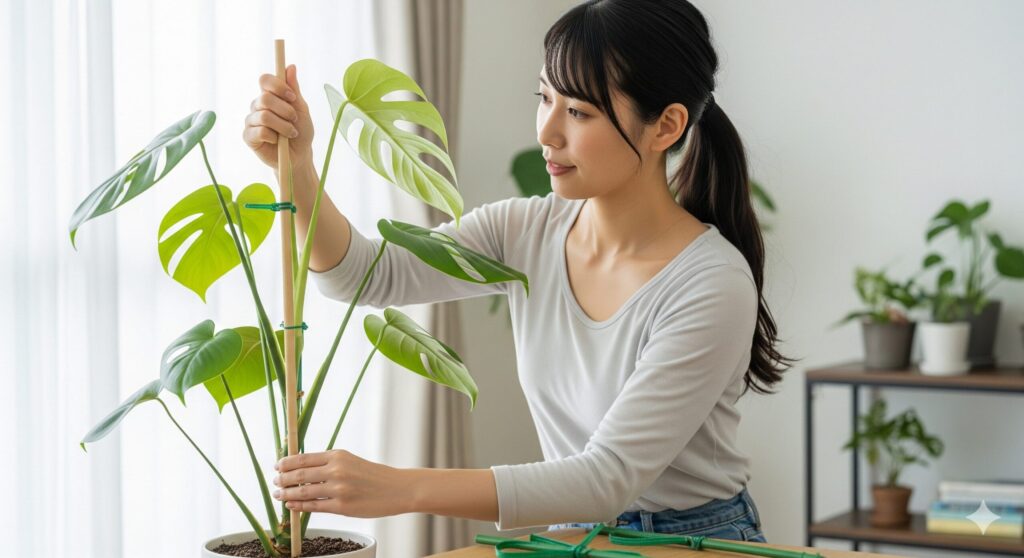 支柱を正しく、そして適切なタイミングで立てることは、モンステラをまっすぐに美しく育てるための基本中の基本です。ポイントを押さえることで、初心者でも安全かつ効果的に作業を行えます。