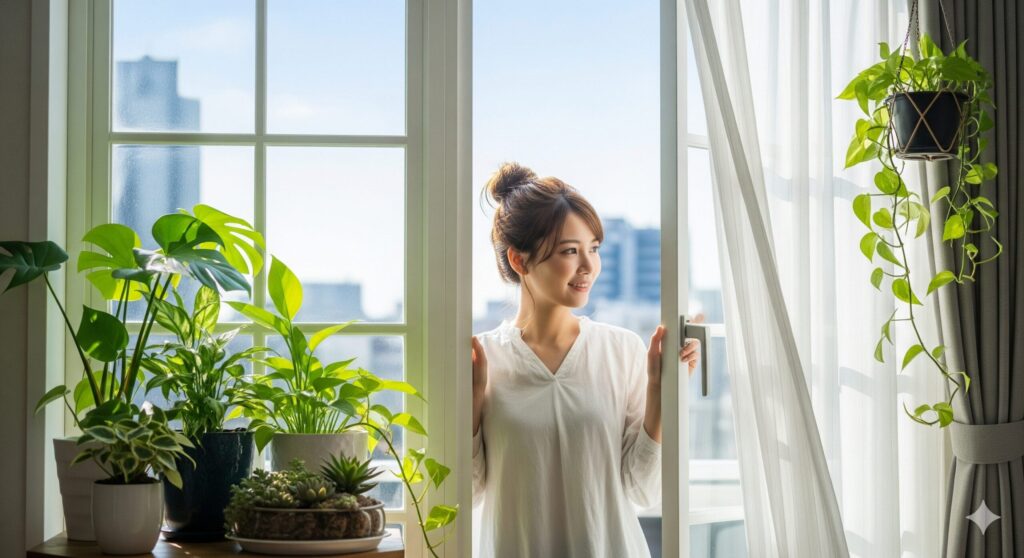 多くの害虫は、日当たりが悪く、空気がよどんだ場所を好みます。植物が本来持つ抵抗力を最大限に引き出すためにも、その種類に適した日当たりの良い場所に置いてあげましょう。ただし、直射日光は葉焼けの原因になることもあるため、レースカーテン越しの柔らかな光が理想的です。そして、最も重要なのが「風通し」です。定期的に窓を開けて換気したり、サーキュレーターで室内の空気を穏やかに循環させたりすることで、湿度の上昇を防ぎ、害虫が定着しにくい環境を作ることができます。住友化学園芸の病害虫ナビでも、風通しの良い環境が病害虫予防の基本であると解説されています。