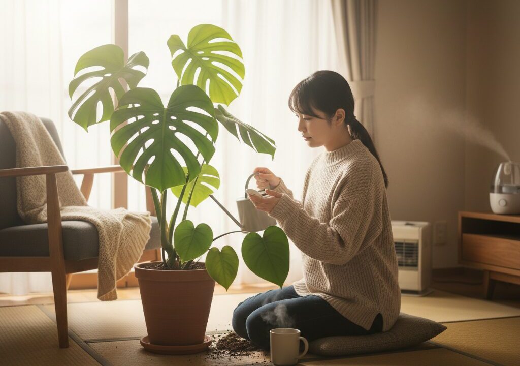 冬のモンステラは「成長」ではなく「維持」の季節。水を「あげる」ことより、「あげない」期間をしっかり確保する「引き算の管理」が重要になってきます。